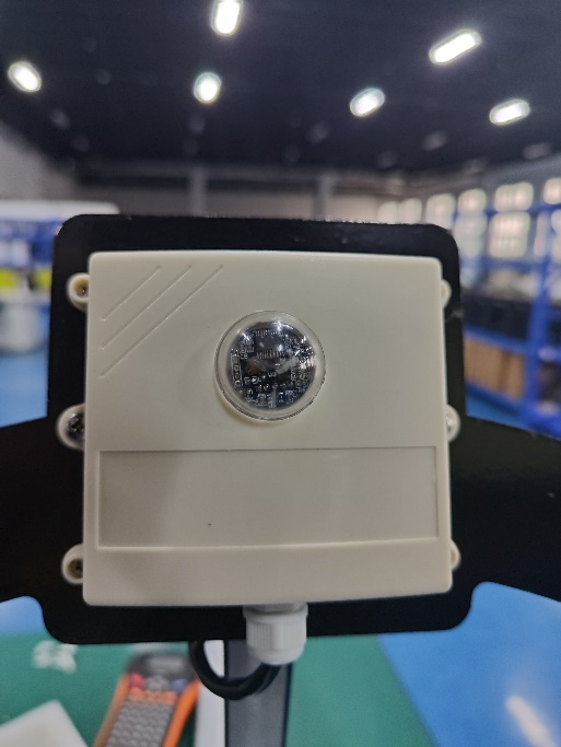 1、傳感器固定:圓盤正前方固定光照傳感器,左右兩側固定風速、風向傳感器